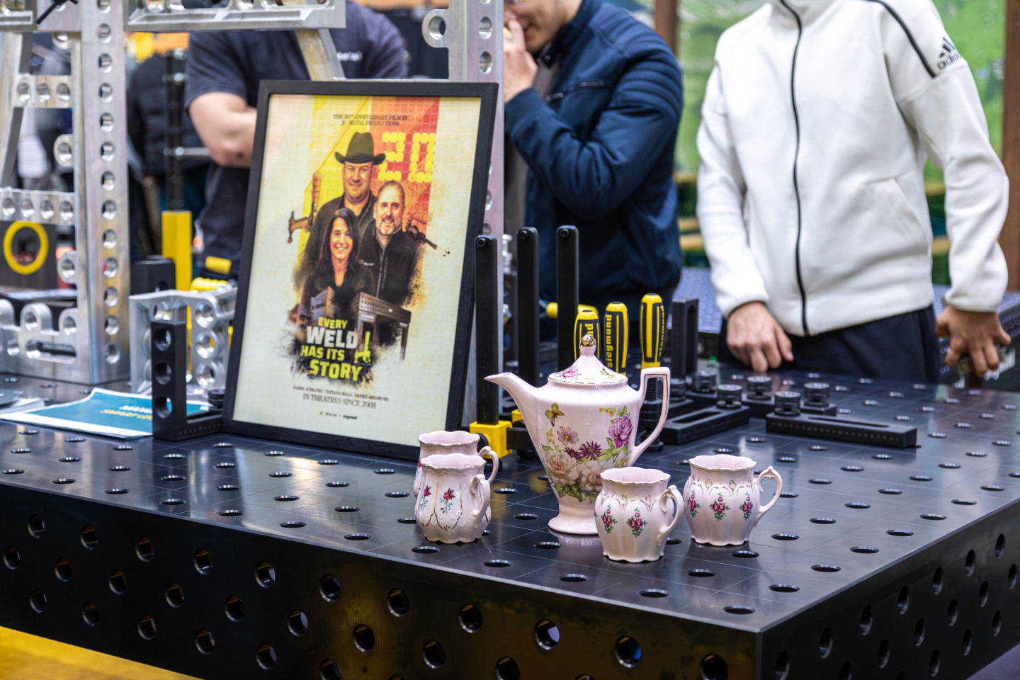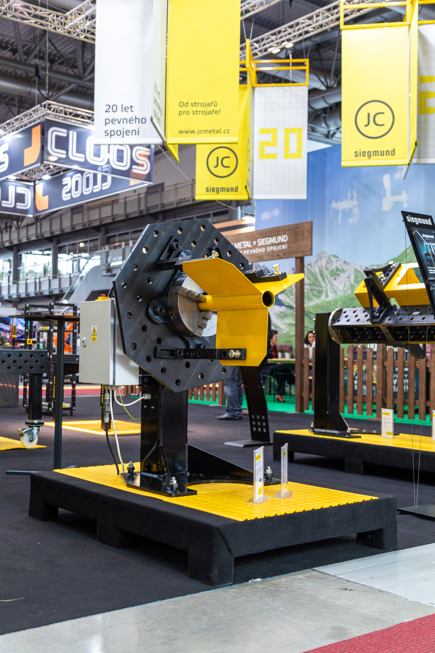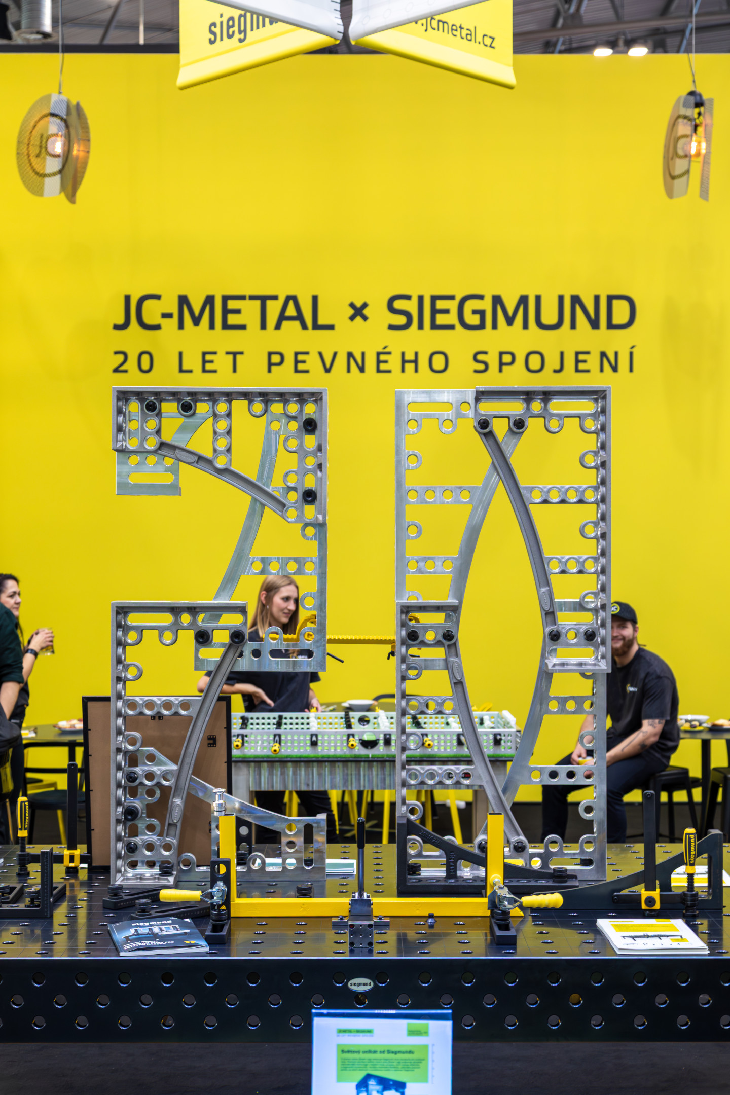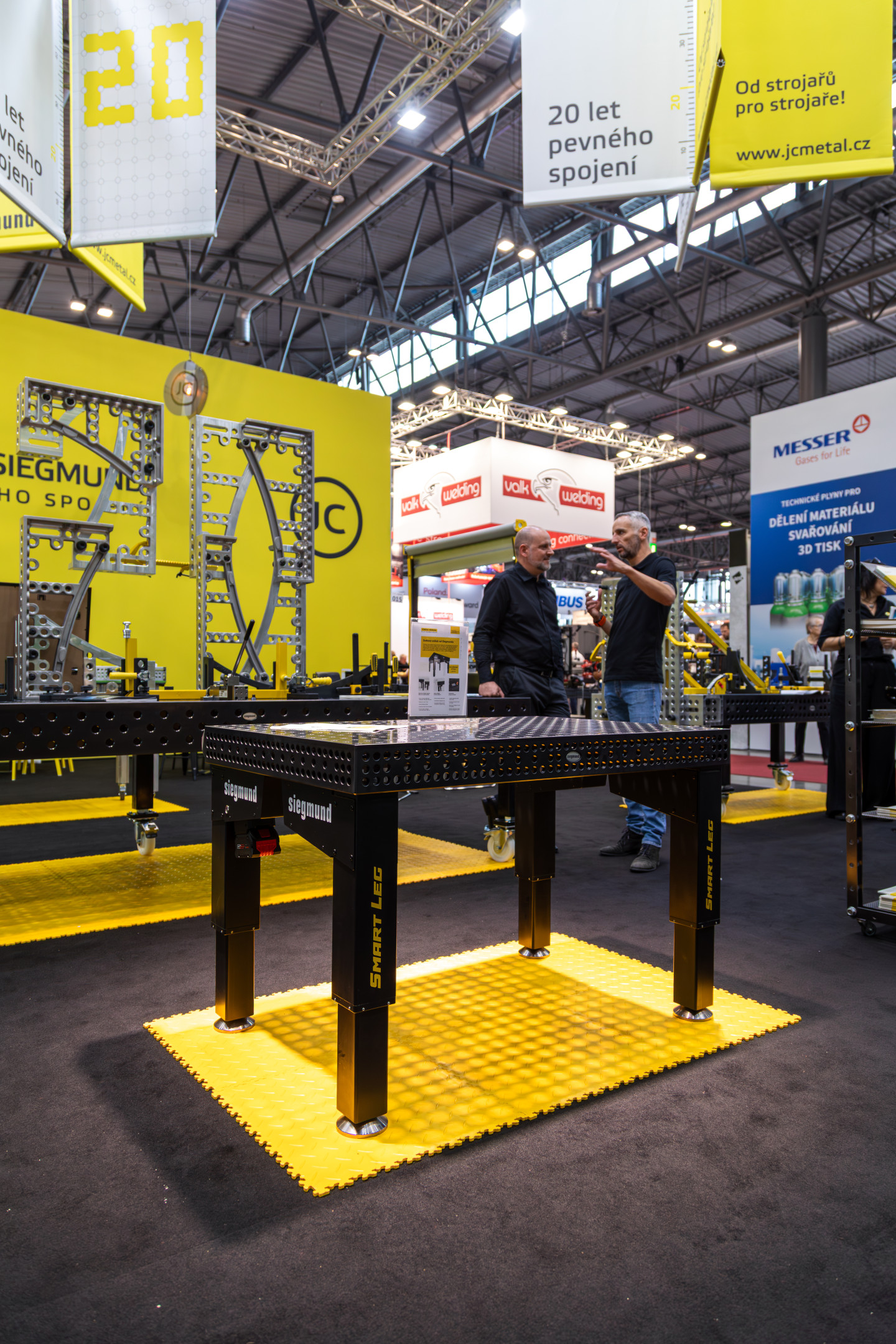 V rámci oslav jsme na MSV představili dva nové produkty. Prvním z nich byla speciální výroční edice svařovacího stolu Siegmund, věnovaná právě jubileu našeho partnerství. Druhým z nich bylo představení nejmodernějšího doplňku ke svařovacím stolům System 16, 22 a 28, elektrické polohovací nohy Smart Leg ovládané pomocí displeje.